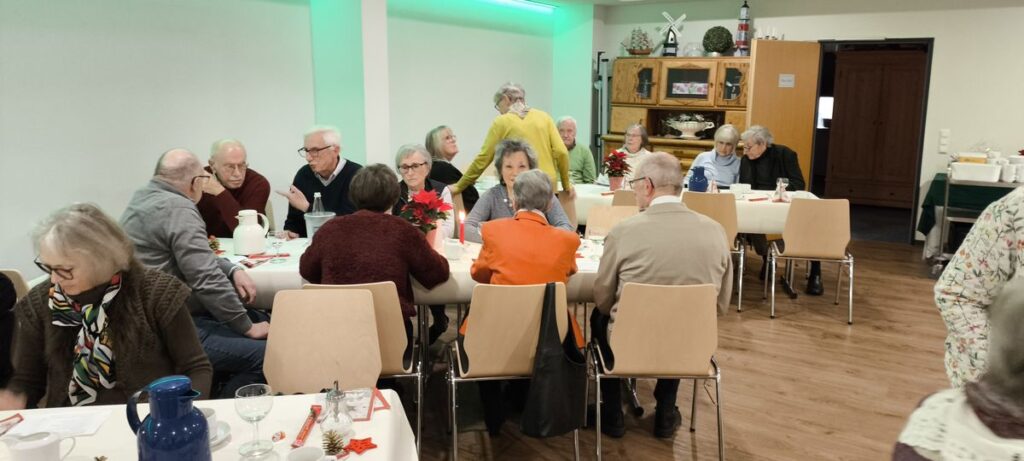 Am Mittwoch, 03.12.2025 trafen sich 31 Seniorinnen und Senioren zum Adventskaffee im weihnachtlich geschmückten Raum. Der Sprecher des Seniorenbeirats hieß die Teilnehmer willkommen, gab einen kurzen Rückblick auf das vergangene Jahr und lud zu Kaffee und Kuchen ein. Die Fragebogen für das Preisrätsel wurden verteilt und dieses Mal schien die Lösung nicht so einfach zu sein. Dennoch gab es einige Teilnehmer, welche fast alle Fragen richtig beantworteten. Drei schöne Präsentkörbe konnten später an die glücklichen Gewinner übergeben werden. Mit Beamer und Leinwand wurden die vorgesehenen Veranstaltungen für 2026 präsentiert.