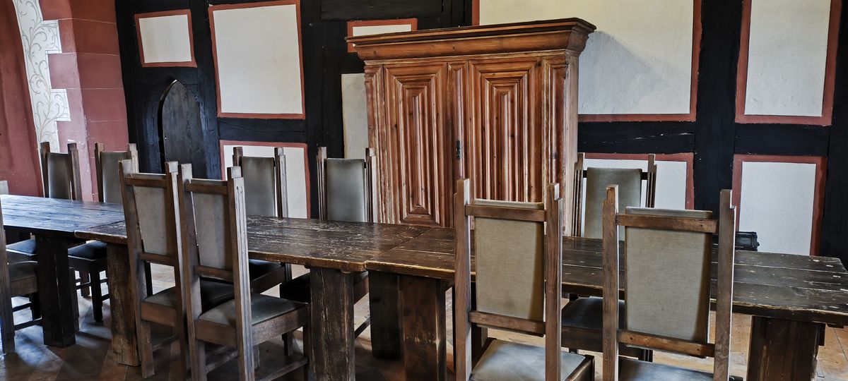 Am Donnerstag, dem 11.09.2025 fuhren 24 Telekom-Senioren nach Büdingen zur Ronneburg. Von dem anfangs trüben Wetter ließen wir uns die Stimmung nicht verderben. Als erstes besichtigten wir die Ronneburg und bekamen einen guten Eindruck vom mittelalterlichen Leben auf einer Burg. Die öffentlichen Räume sind mit diversen Gegenständen und Möbeln eindrucksvoll ausgestattet. Eine Burg ist bauartbedingt nicht barrierefrei und deshalb konnten einige Senioren die oberen Stockwerke leider nicht besuchen.